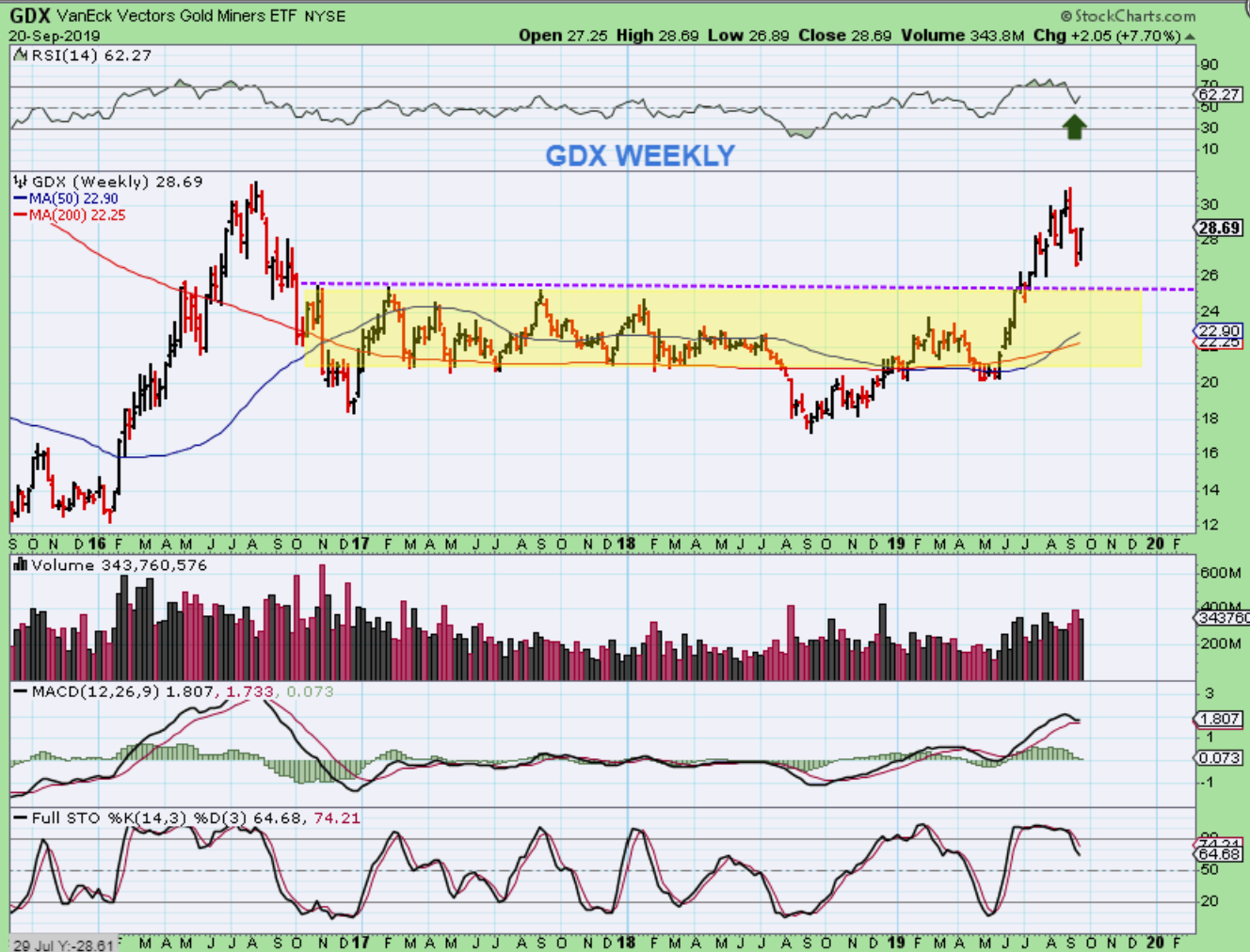GDX WEEKLY – What started as a lack luster week ended with a strong reversal.