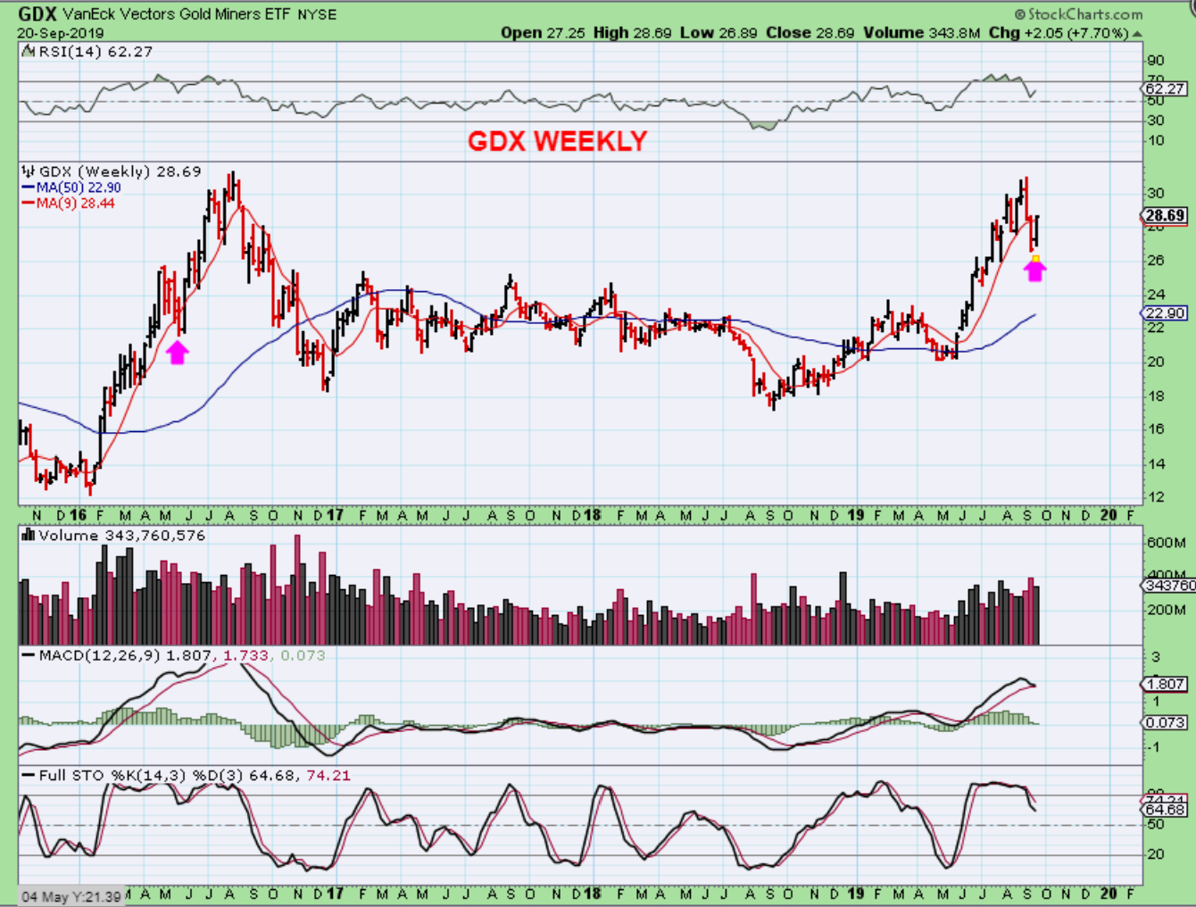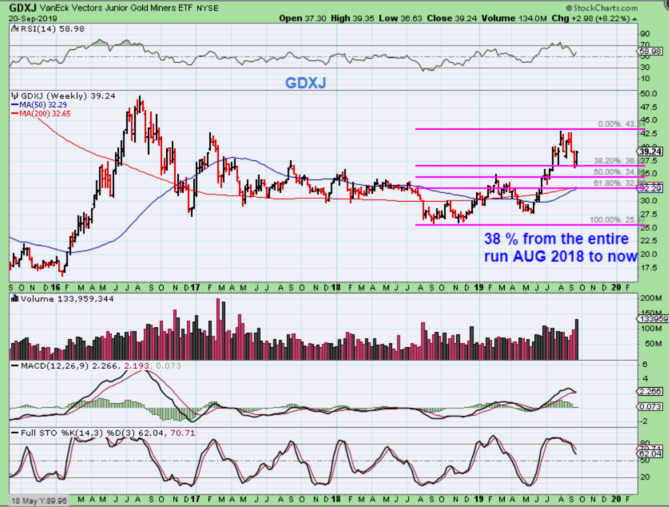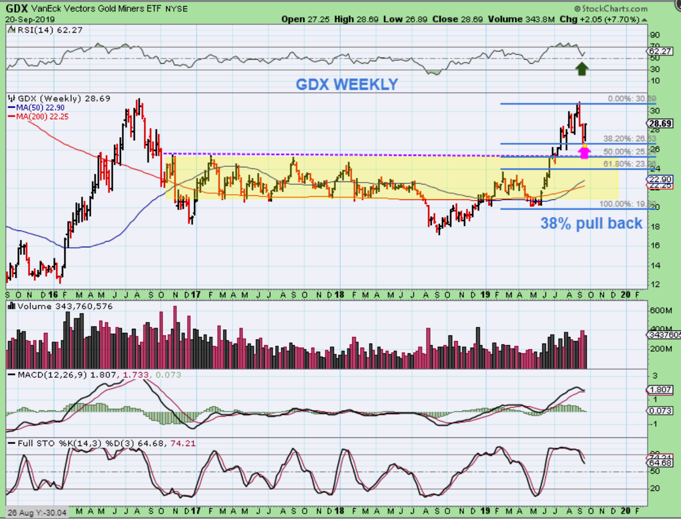 GDX WEEKLY – And we can see that this was a drop to the 38% retrace.