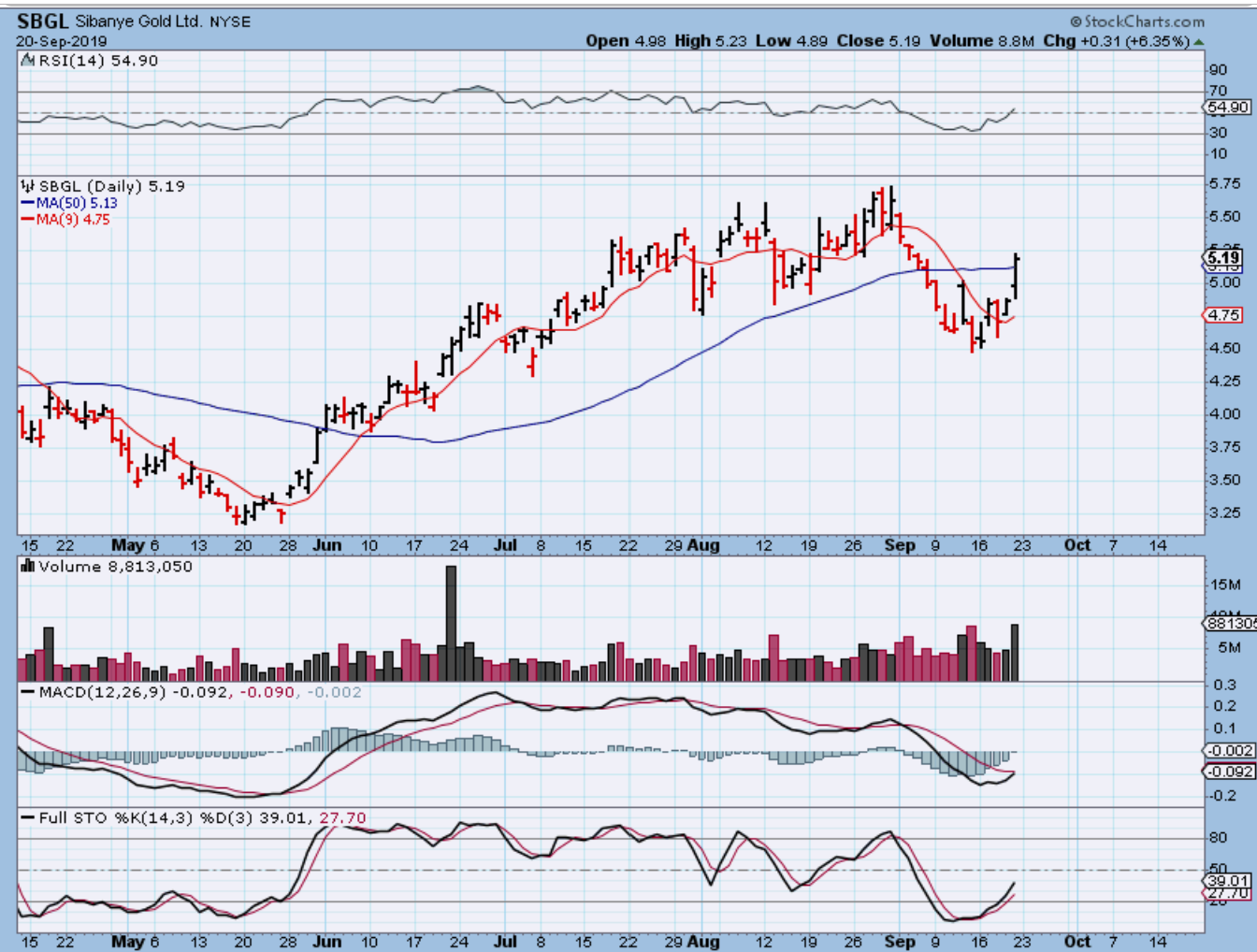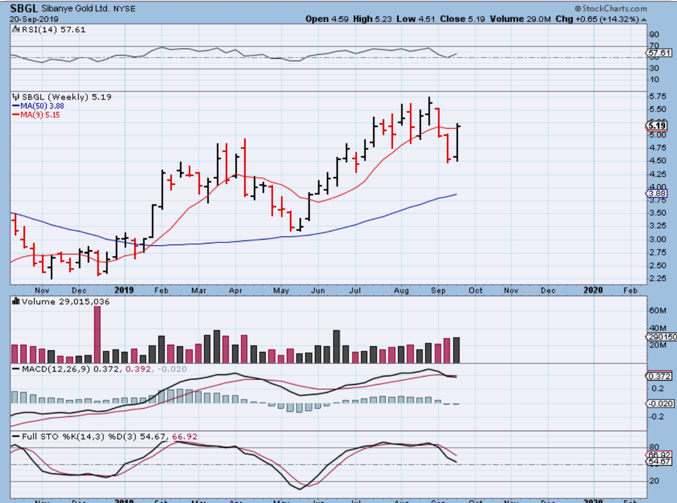 SBGL WEEKLY – That big reversal on the weekly chart had SBGL up 14% for the week. The bullish surprise was to the upside for SBGL after a pretty steady drop on the above daily chart.
