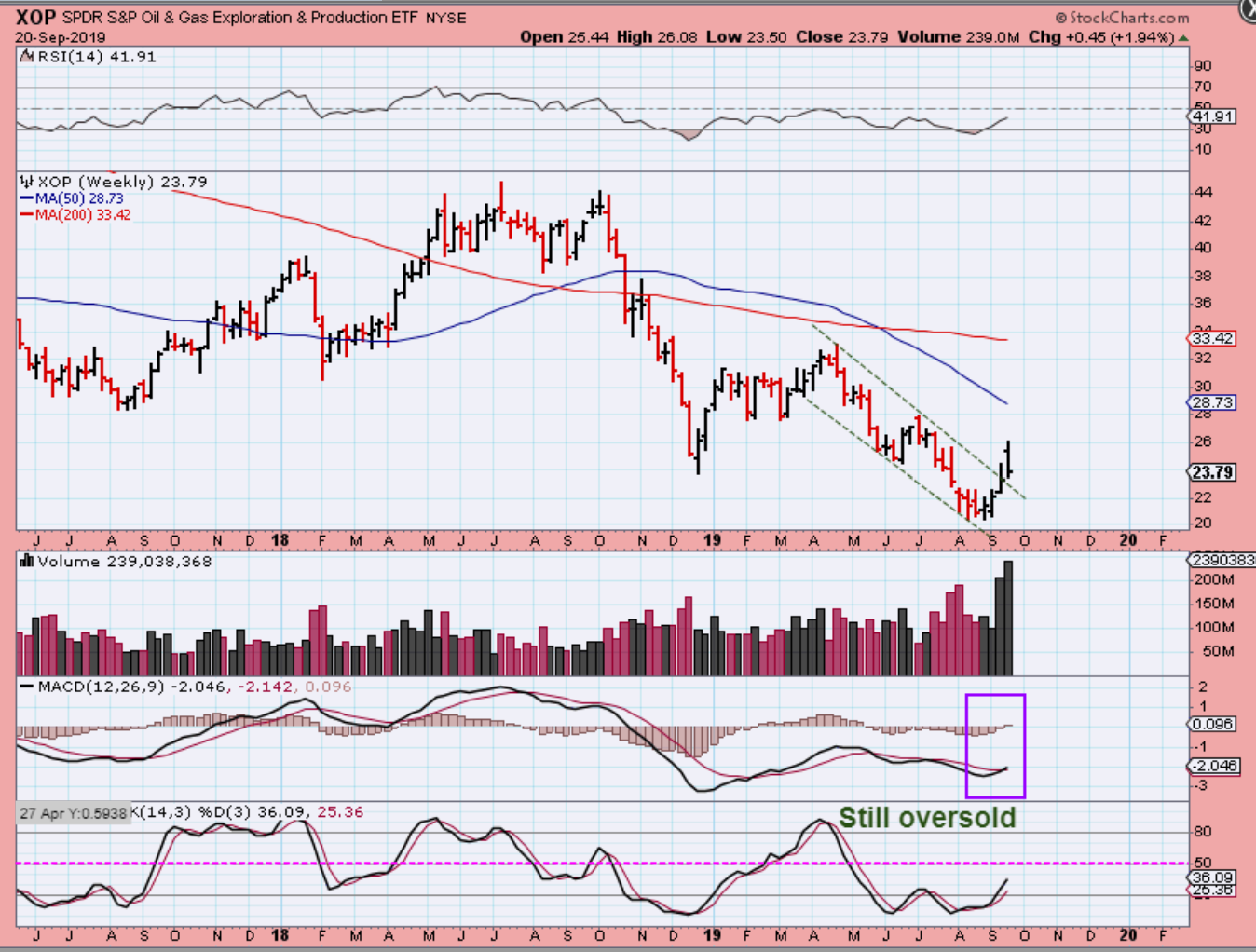 XOP – Oil / Energy stocks also Popped & dropped. Now we just need to see if this was the start of a move higher or part of a bottoming process.