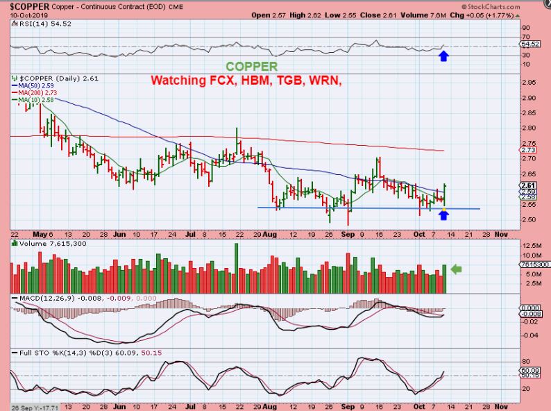 COPPER– That had a nice Pop, but like I said, we did see a similar POP in early September. Copper may be bottoming & has built a small base for 2 months, and…