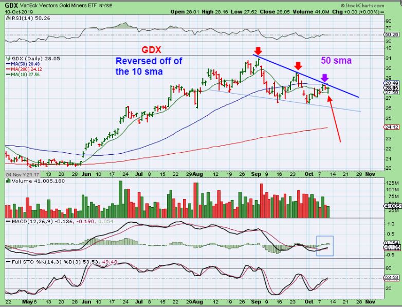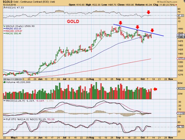 GOLD – Gold was rejected at the downtrend line & lost the 50 sma yesterday…