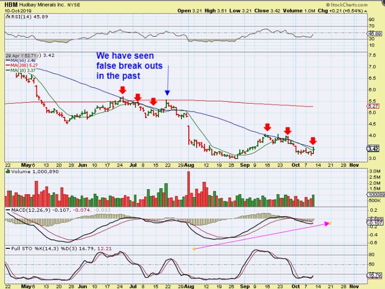 HBM – FCX even looks a bit better than HBM, but I’m pointing this out as still being at the recent lows with big MACD Divergence and a breakout is buy-able ( We did see a false break out of the 50 sma in the past, the 200sma held it down).