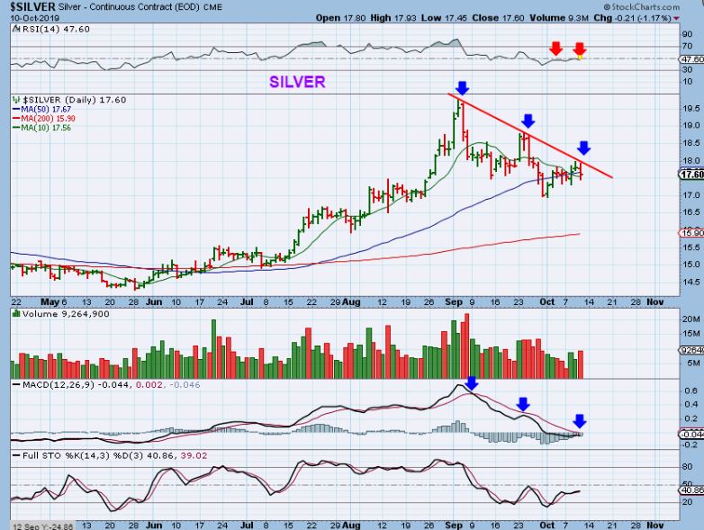 SILVER – Silver also reached resistance & dropped, despite the USD dropping…