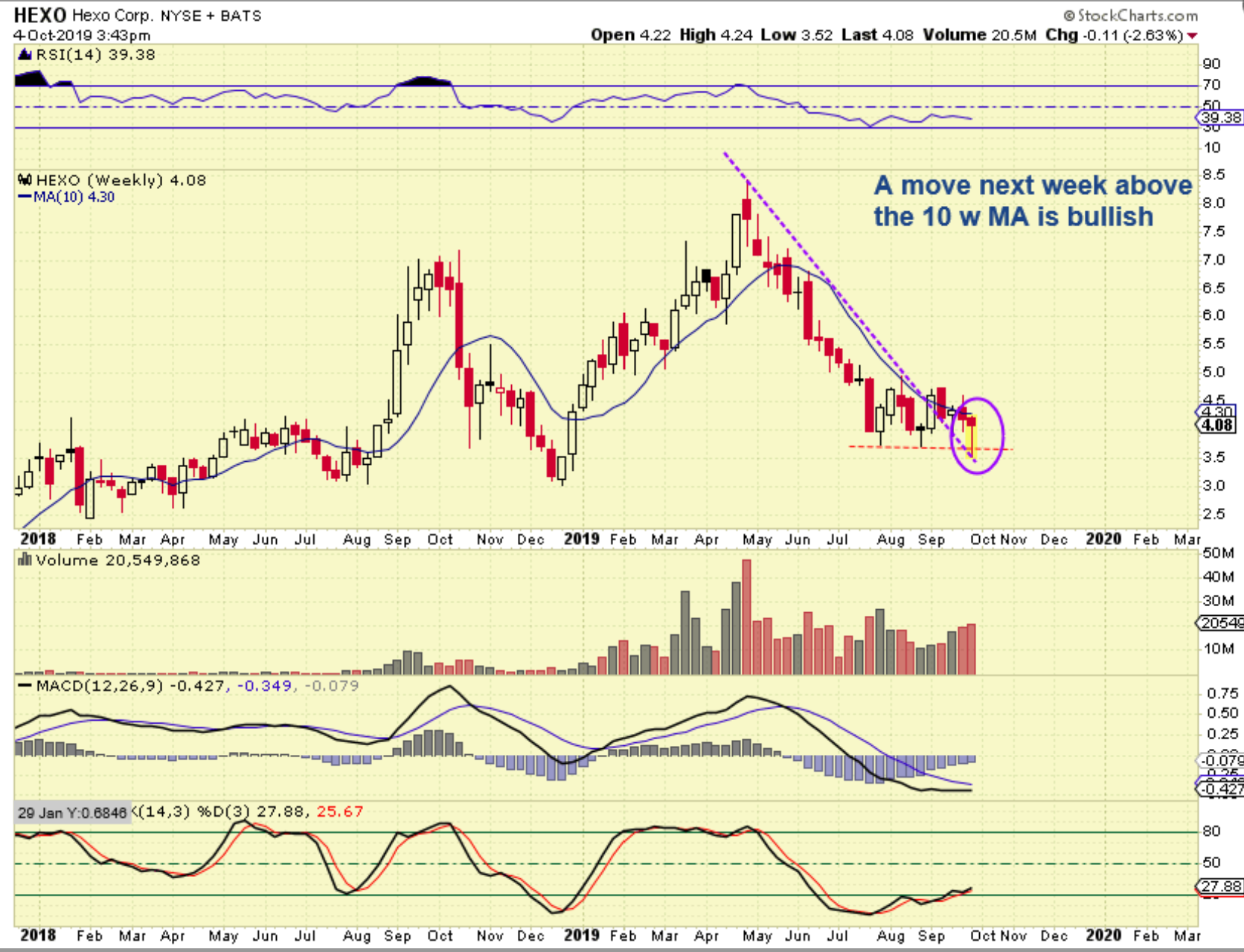 HEXO WEEKLY – Many of the MJ STOCKS put in great Weekly candles, like HEXO, ACB, CGC, MJ ETF, etc.