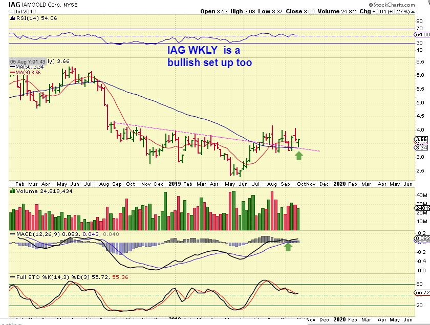 IAG WEEKLY – I see some Miners looking ugly, some very bullish ( SBGL, DRD, etc) and then some like AUY, IAG, GORO, etc look to be holding up or even improving. To be Hinest- this looks Bullish as a weekly chart.