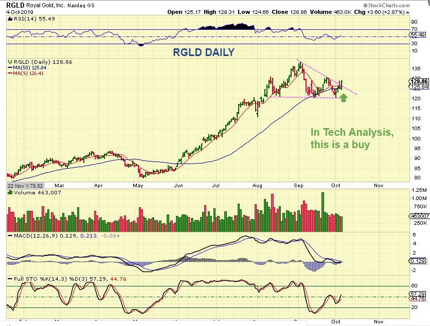 RGLD DAILY – And RGLD gave me a Buy signal on the daily, so I mentioned that in the live area Friday. HMY is close too, so I had to close my JDST and watch to see what kind of movement we get next week. These look bullish, so…