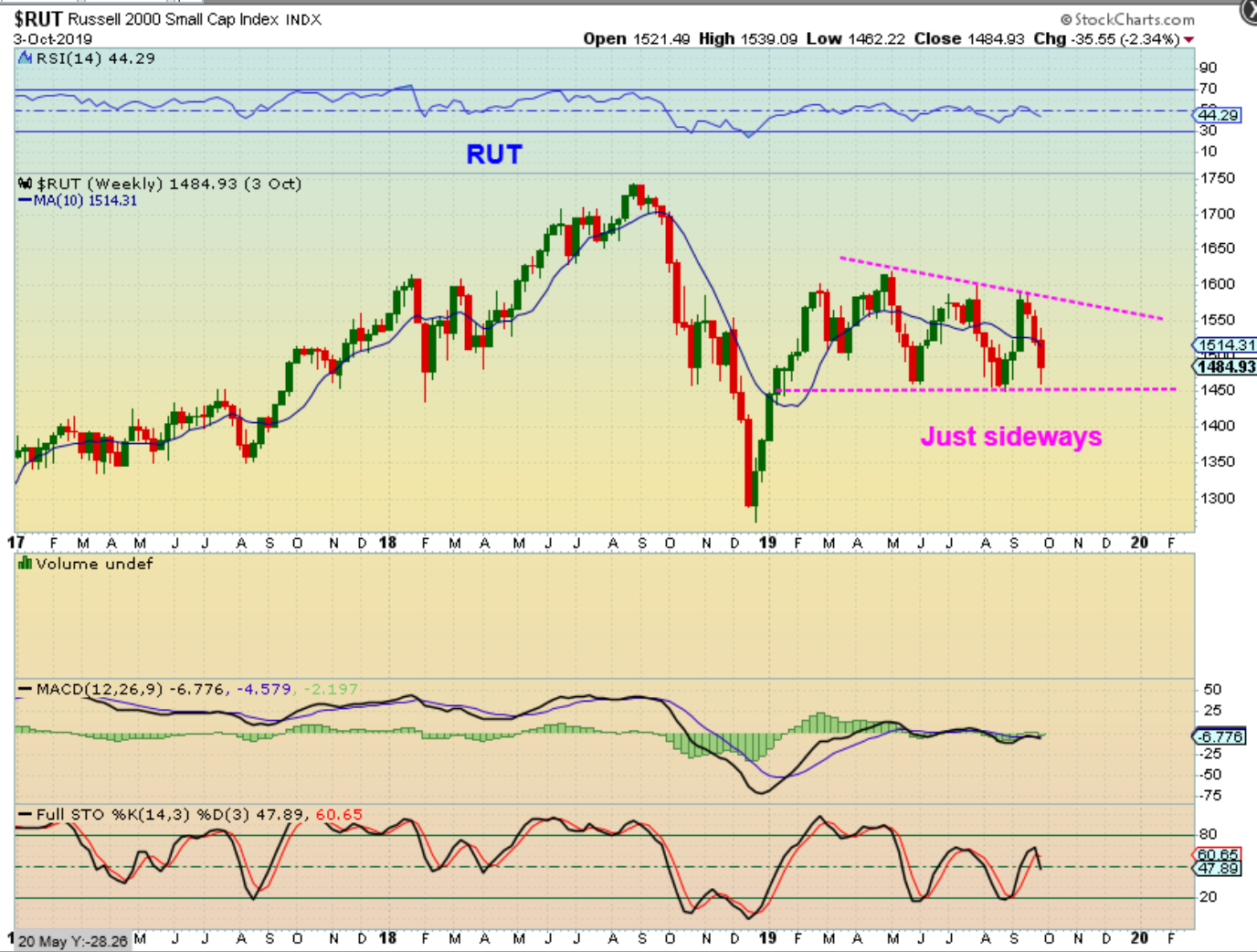RUT WEEKLY – After rallying strongly out of the Dec ICL, the Russell 2000 has simply been chopping sideways all year out of each dcl.