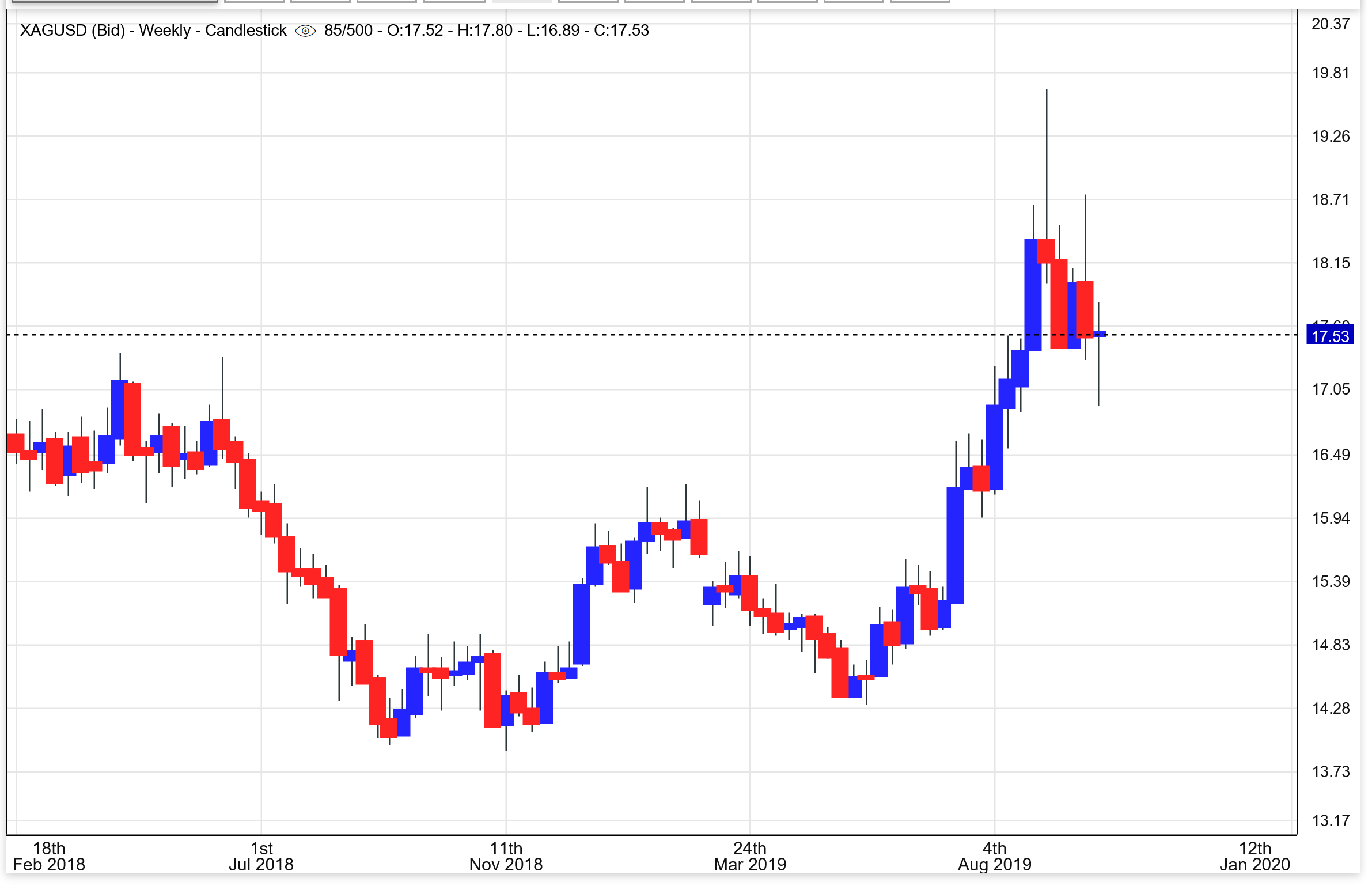 SILVER WEEKLY – Silver is also a weekly doji after a sell off, but it too looks like a reversal from a sell off. In Tech Analysis, a DOJI is indecision and can lead to further selling, so we need more time here too.