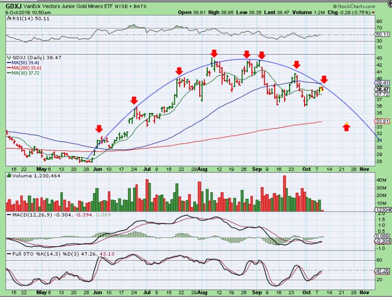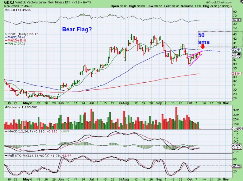 GDXJ – I posted these in the live area, showing a bearish look if these do not break higher.