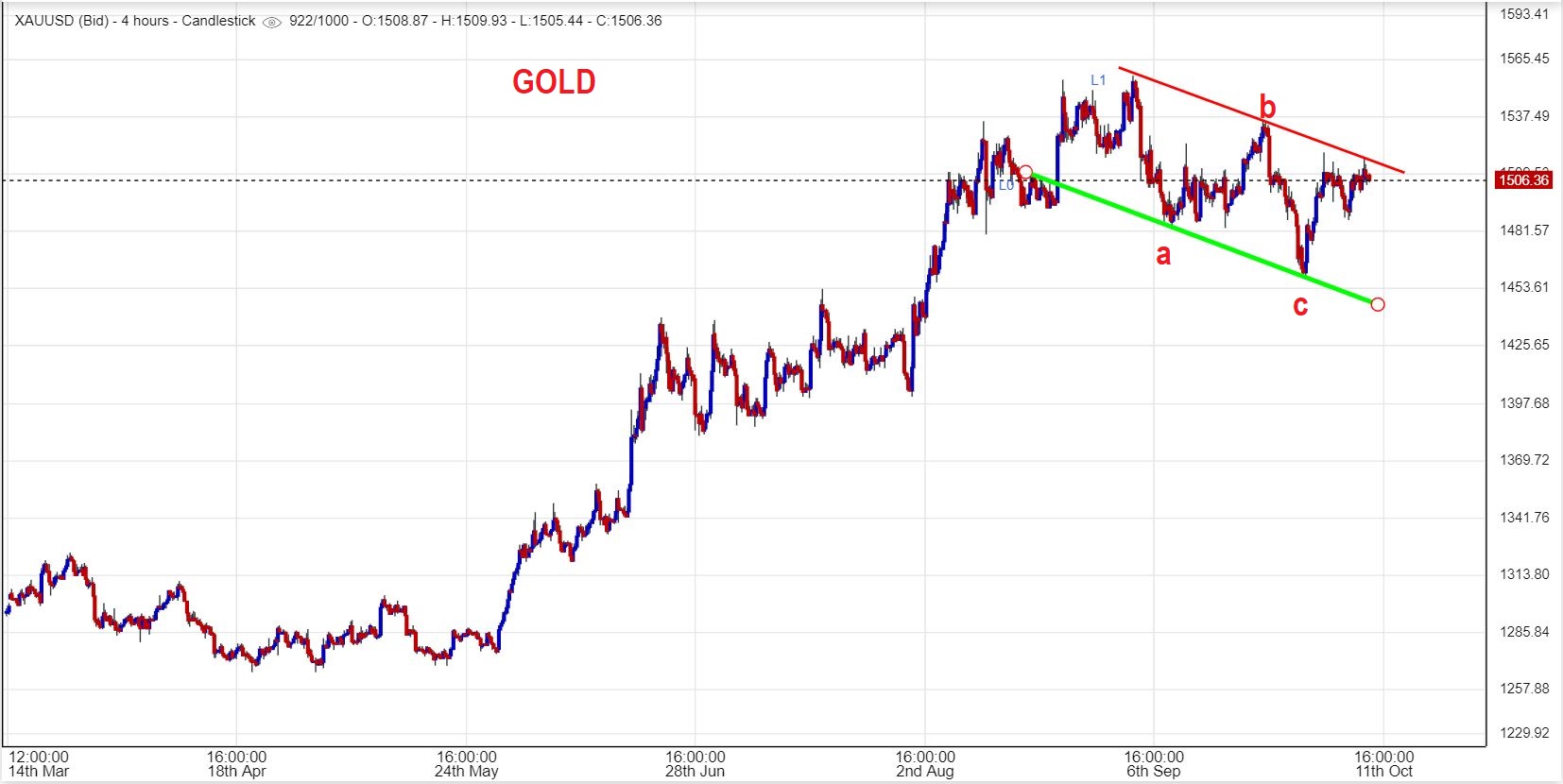 2 charts of GOLD – The following 2 charts of gold show 2 very different views of Gold using technical analysis. A Bullish & a Bearish view, which is why we need the next move to identify the next direction…