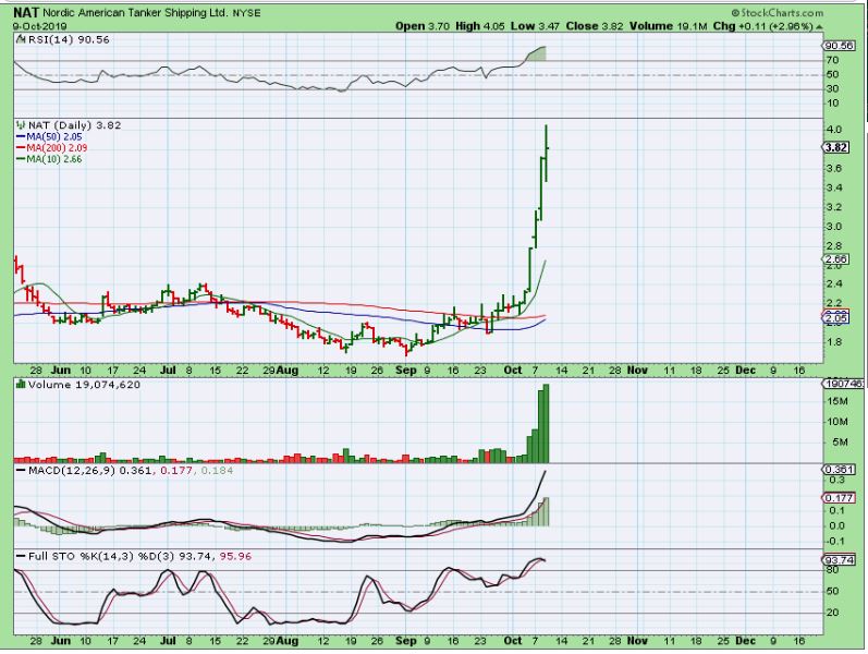 I have been talking about ‘Shippers‘ in the comments section. Some of them have been gradually trending higher ( SBLK, SALT, etc), and others are rocketing higher ( NAT, TNK, ASC, etc), and they have moved whether or not the General Markets go higher, so I was looking for a couple that may be just ready to move higher now. I wanted to point that sector out again here.