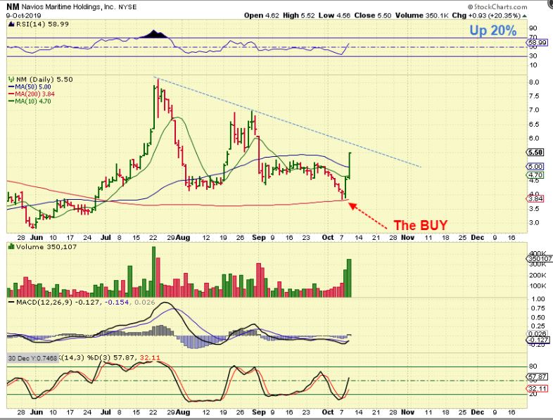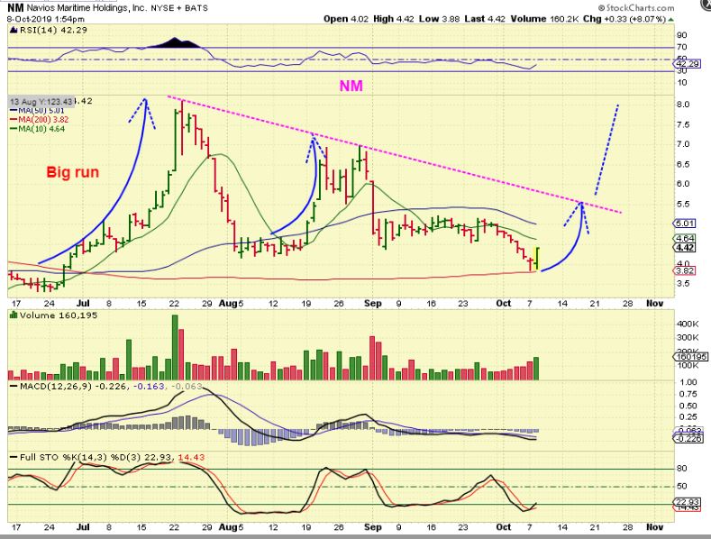 NM DAILY – So recently I pointed out NM as a BUY when it reversed on the 200 sma. I own this one after buying near that 200sma reversal.