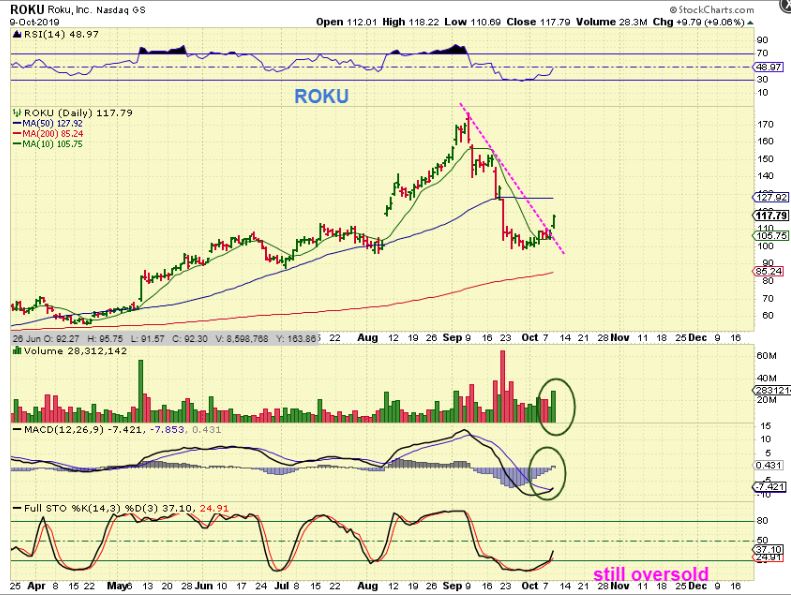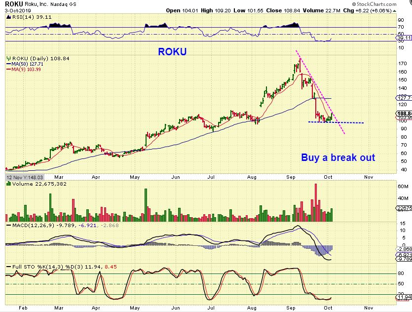 ROKU OCT 3 – I Posted this chart of ROKU- Buy a break out ( or buy here, because it just closed above the 10sma…
