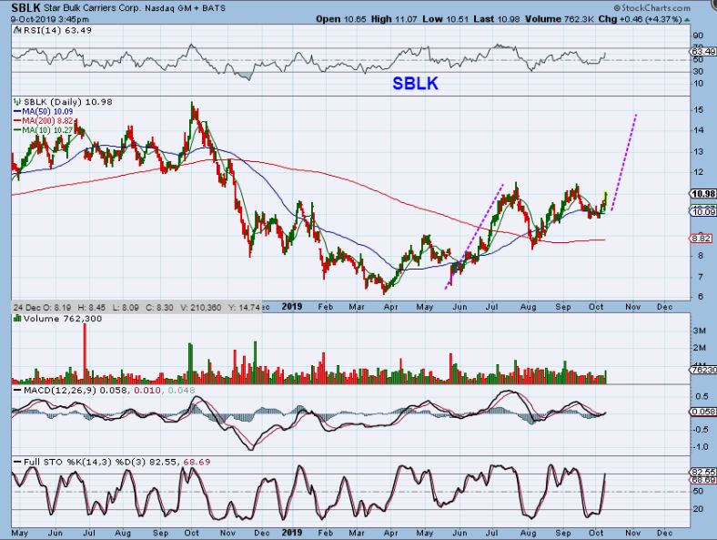 SBLK – I like the patterns for SALT & SBLK. This is SBLK and you can see that it is also climbing since May. I’m seeing an apex forming and…