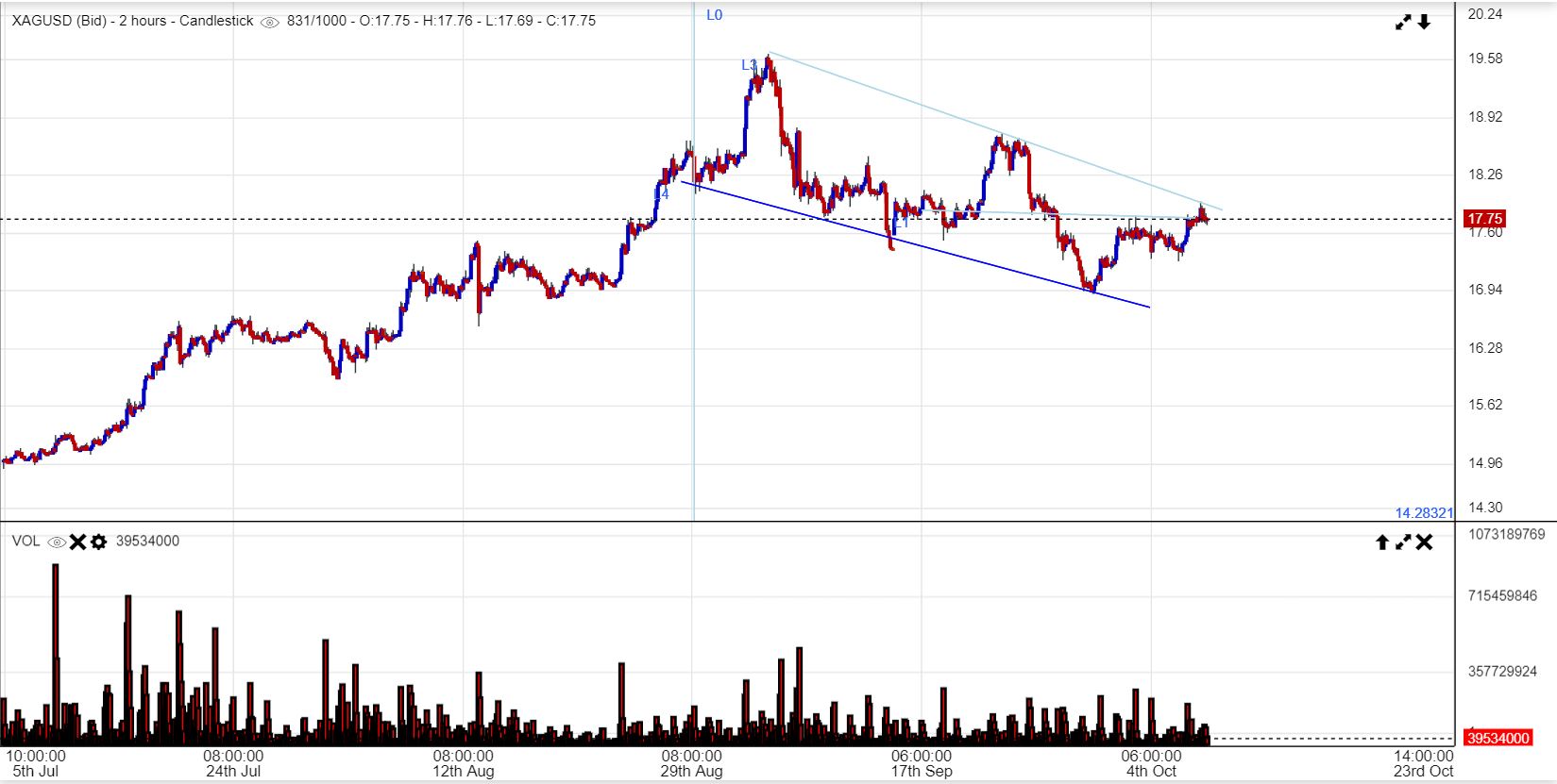 SILVER PRE-FED : Silver also tagged the upper trend line, but made no directional change .