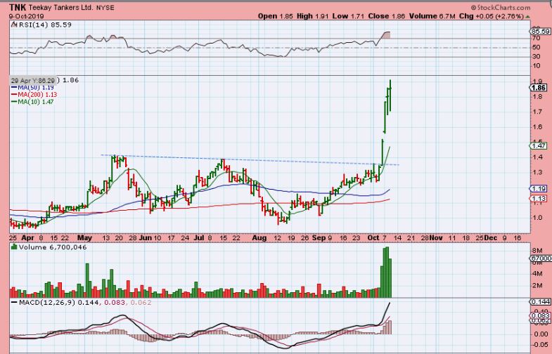 TNK – These shippers are moving quickly out of bases. These are NOT for everyone, the choppiness caan also be big as they can rise & fall quickly, but if you catch them low, there is a chance that you’ll grab some quick gains.