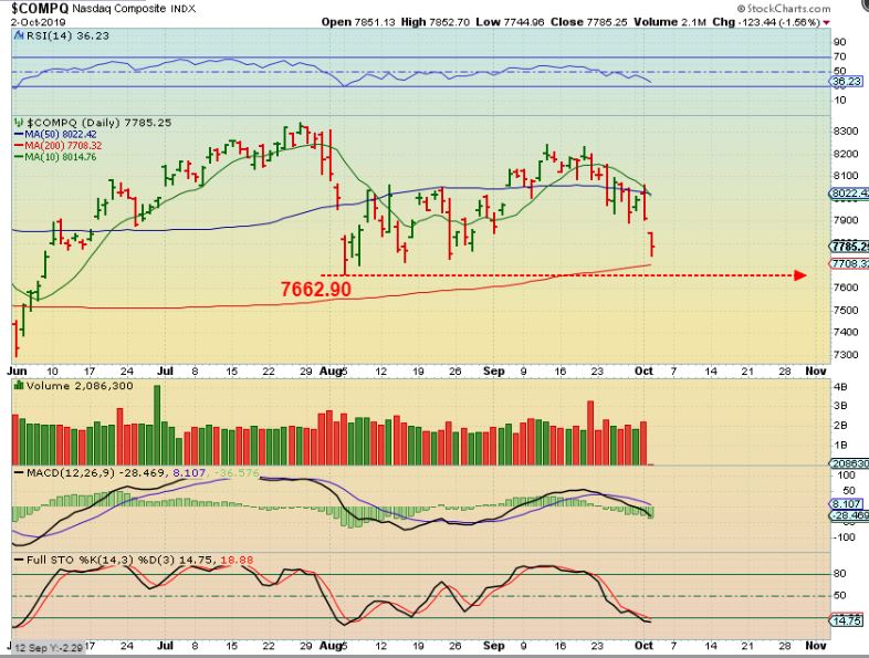 NASDAQ – The NASDAQs last DCL was 7662.90. It is possibly dropping to the 200sma for a reversal.