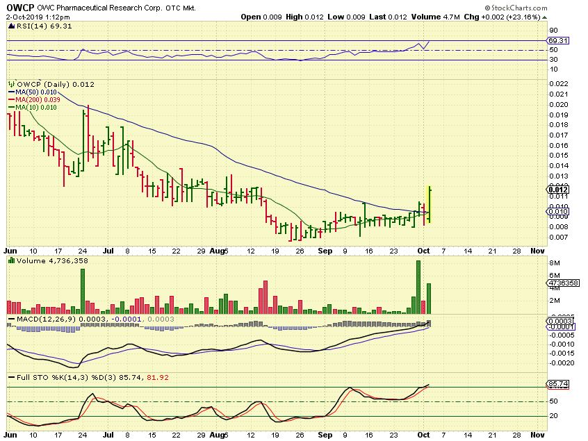 OWCP – It closed up 50%! Its a penny stock, but I wanted to look at the entire sector and see what is taking place.