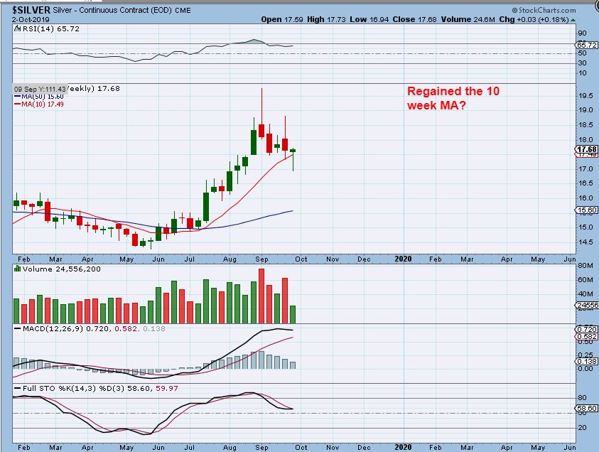 I do have the same problem with Silvers weekly chart- It looks like a rock solid bullish reversal, because it regained the 10 weekly ma & RSI started to turn up again. The chart for the weekly GDX & GDXJ does NOT look bullish, so we need more time.