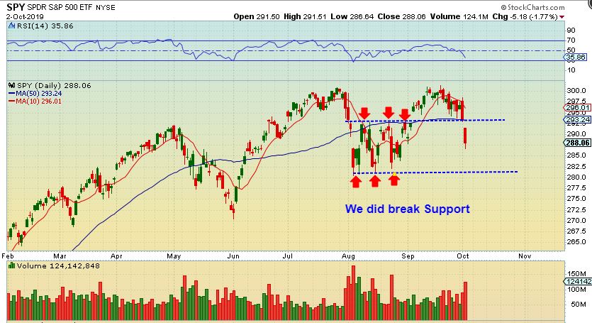 – It looks like we are close to getting a reversal and a DCL in the General Markets. It can be bought as a short term trade, and we’ll monitor as it moves higher, but the bigger picture looks to be weakening steadily. This may be a L.T. Daily Cycle that rolls over sooner than later. I’ll save that for the weekend report, but we have also broken support on a simple pull back, as seen here.