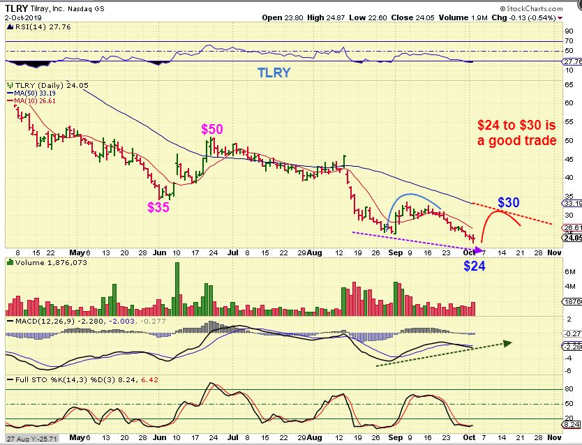 TLRY – $35 to $50 on the June bounce was a good trade… $24 to $30 would be a great trade*