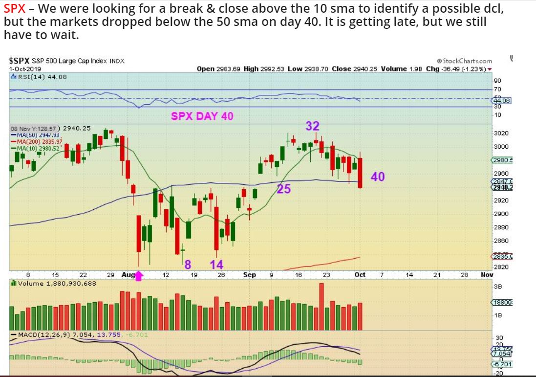 SPX – Day 41 is late, but we are still waiting for a reversal and a swing low. The 2822.12 is very important here. That is the last DCL Number.