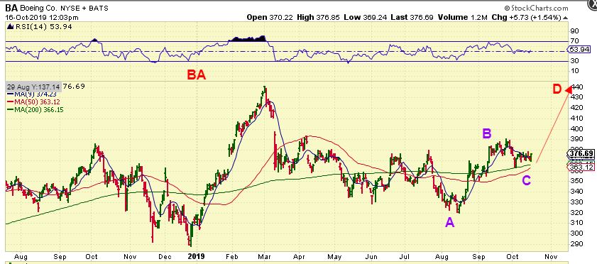 BA – Boeing rallied from August to September, consolidated those gains and found support above the 50 & 200sma. There is a good chance that if it breaks higher, it can reach $440 ( prior highs).