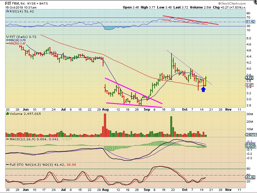 FIT – It reversed, broke higher, and broke the down trend from the open on Wednesday. I posted this in the live area after the 1st hr of trading. I own it and I think that it is still a buy.