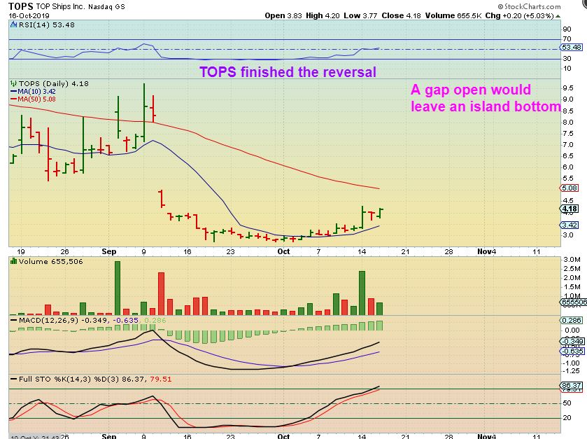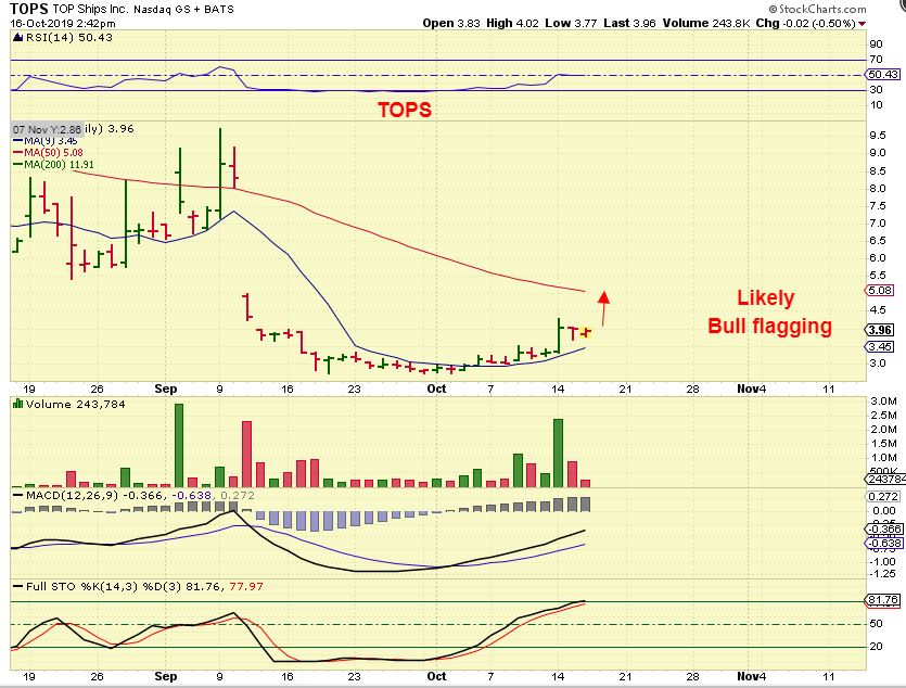 TOPS – I posted this possible bull flag in the live area, saying that I’d add if it broke higher. It was under $4. I’ve also been watching an intra-day chart for TOPS and …