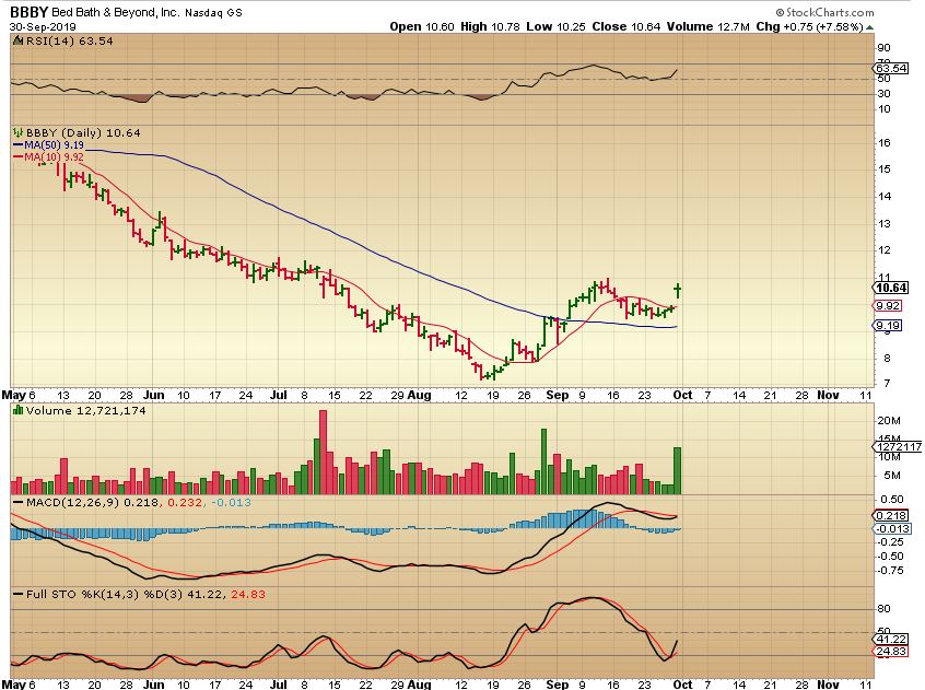 BBBY– I like this type of set up when I am expecting a bounce or lows in a sector. BBBY actually hovered above the 50 sma , but my point is that you have a rally out of the lows, and then a pull back. It could be 1-2 of a 1-2-3-4-5 move, so I look for similar set ups to this, to buy the reversal at ‘2’…