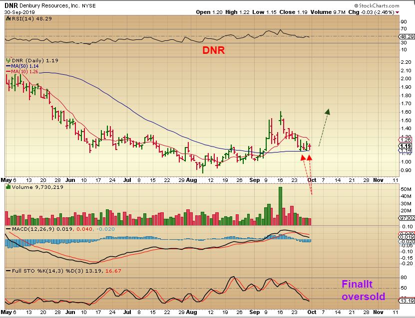 DNR – DNR is still holding above the 50 sma. Despite Oils drop yesterday, it was own 3 cents.