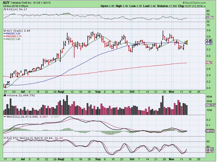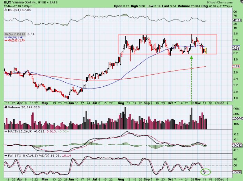 AUY –  AUY has had nice volume as it pushed over the 50 sma, so I still like it here. It could break the box upside if the dcl is an ICL, and…