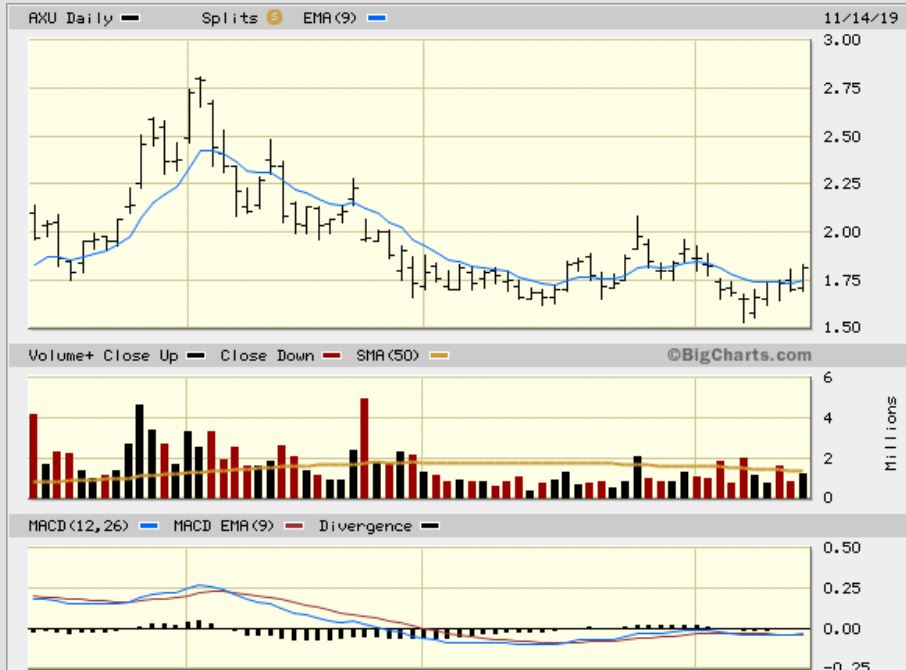They released earnings after the bell and AXU traded up 6 cents at $1.87.  I didn’t think that the earnings report was very good, so we’ll see if this continues into Friday or not.