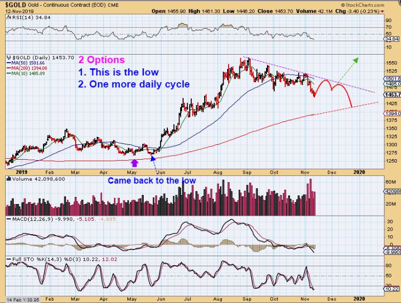 The Dreaded reminder #1 :  GOLD – After we get a Swing Low, we bought with the hope that it may also be an ICL. There is a chance that it will form as Left Translated, and roll over by day 5 or so into a final daily cycle- so we have to keep that in the back of our minds.