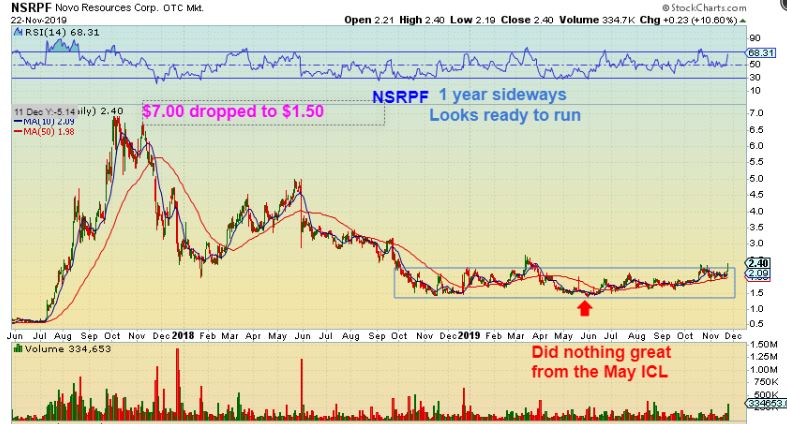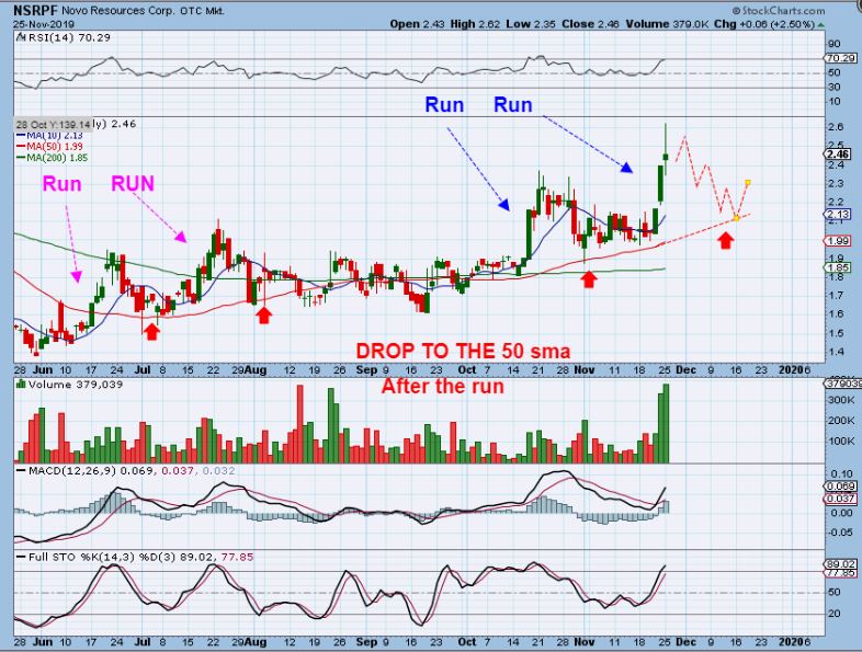 NSRPF OCT 28th  – I posted NSRPF as having a tight bull flag at the end of October.  It did NOT have a great run from May to September, so I mentioned that it could play catch up after popping from that base.