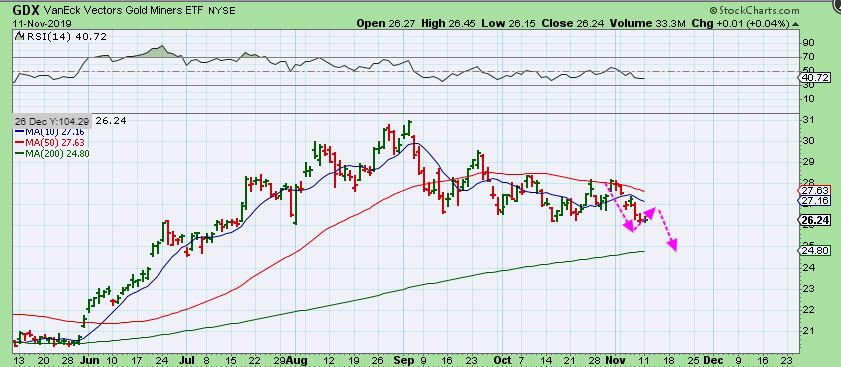 GDX #3 – If Gold & Silver are on day 30 Tuesday, GDX could follow Golds timing into a DCL , maybe by the end of this week near that 200sma?