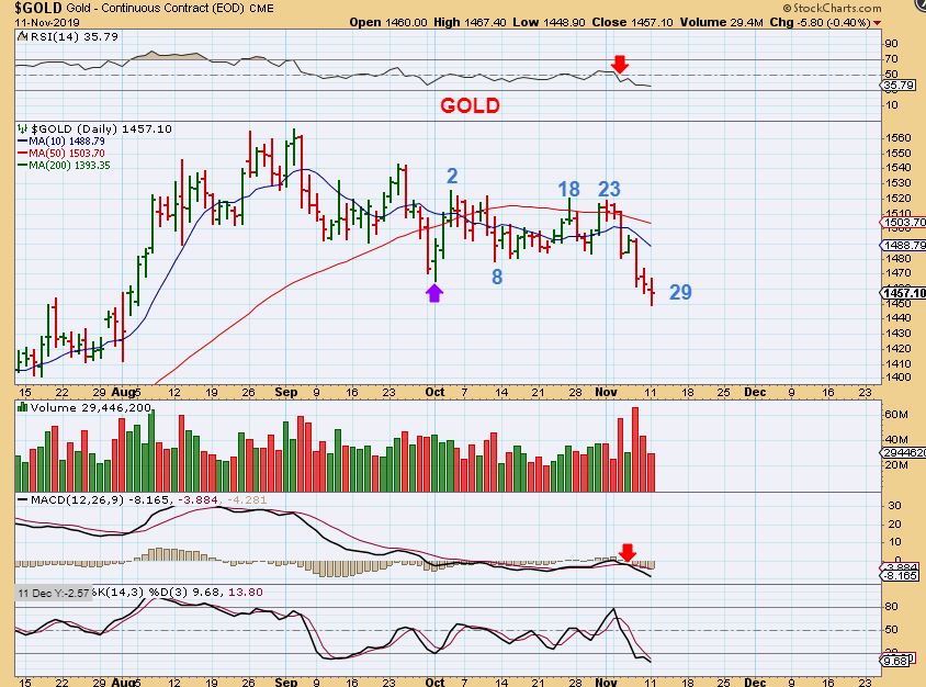 GOLD – Gold started that drop into the DCL 7 days ago and made a new low again on Monday, day 29. The weekend report covered a lot of ideas in this sector, with Fib Numbers, targets, etc. Day 29 is starting to get late in the daily cycle, so I will begin to watch for a confirmed swing low.