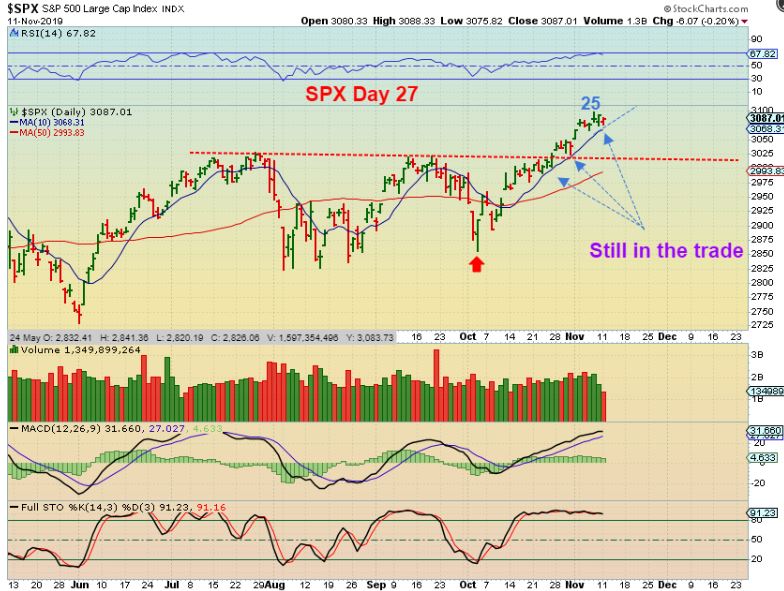 Would I see anything wrong with holding one of these Silver stocks? Not if you can take a little choppiness, in case we see that going forward. These Silver stocks are acting much better than the rest of the group,so holding a position in one or 2 is probably fine going forward. If they drop, they will probably rebound quickly after a dcl is in place. I sold my HL for profit and actually re-entered it on the drop / reversal, but I am not currently trying to give the impression that I am buying Miners. I am waiting for a dcl. If we are on day 30 today of a final daily cycle and dropping to an ICL, these Silver leaders could really out perform as they trend higher after the lows are in. What if we have 1 more daily cycle heading into December? These Silver stocks may just finish their rally soon & simply drop back to recent lows. It is odd to see such strength this late in a final daily cycle, so it does show that some Silver miners are acting more bullish than usual. This could be accumulation where big money has to buy on the way down and they end up propping up price. We will continue to monitor this sector closely, since we are now on day 29 as of Monday.