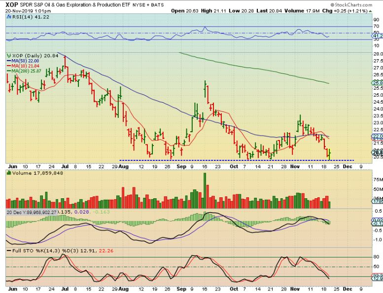 XOP  – The XOP dropped all the way to the lows and flipped higher too. That could be a low risk buy, since a stop can be placed right below the lows, but I am not taking this trade right now. ( Gush would be the trade if I was going long).