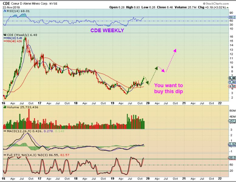 CDE BIG PICTURE – This is what I think of CDE, SBGL, and SVM in the Big Picture. I think in the long run, you want to be in these, so short term trading isn’t really necessary. CDE is really just getting started here, and…