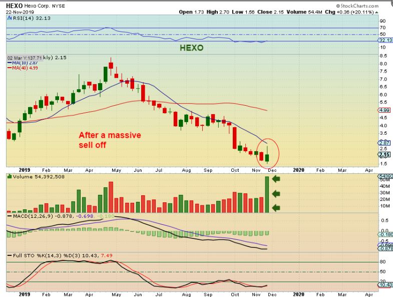 HEXO WEEKLY – Hexo did the same thing as CDE too, and these are not the only ones, so this may be hinting that the entire sector has bottomed, and it has put in its own ICL.
