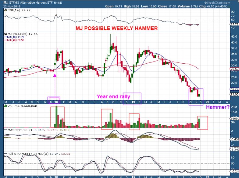 MJ WEEKLY – The MJ Sector often rallies at the year end & into January too. Is that about to repeat? I am looking for clues now.