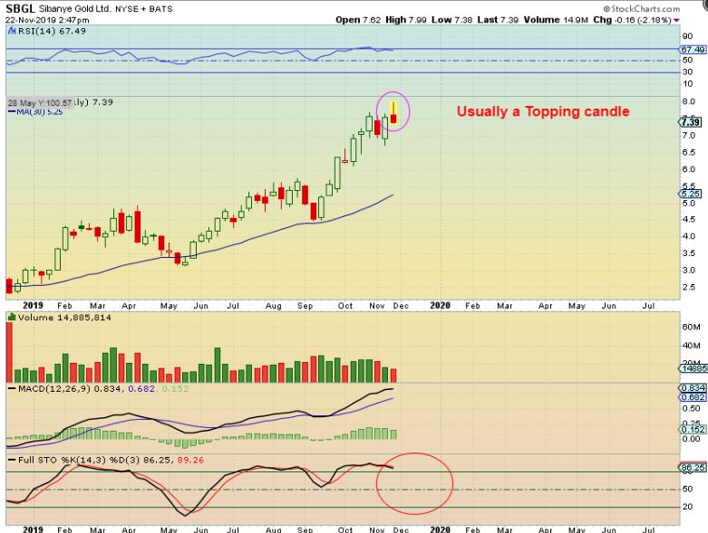 NOTE: Shooting Stars can be a temporary topping candle, it signals price unable to hold the highs. I started seeing shooting starts on the weekly charts of individual Miners, so let’s take a look…