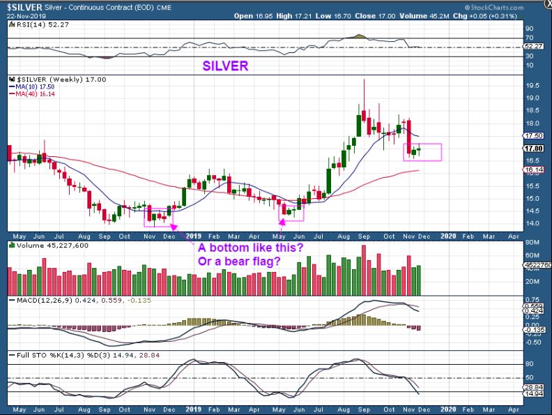 SILVER – We have the battle of the Bulls and Bears here too. It also has had choppy sideways action at the last 2 ICL areas. It can do a bear flag sideways and a final slam down, or eventually push higher. Look at the last candle from last week and you see that it gave us no further evidence.