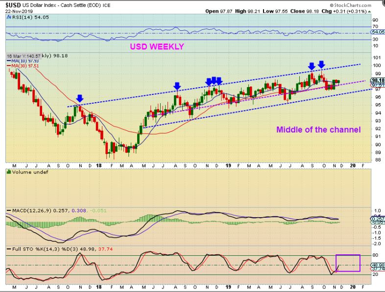 So as you can see, not much changed with this weeks action. We do have some weekly reversal Candles showing up with the Miners, but it is not overly alarming. The USD can run higher and Miners can pull back. Most sectors have been chopping up & down / sideways anyway so we may just see more of the same. We’ll see if next week begins to clarify if each sector will choose a direction. I have expected a dip in the General Markets soon too.