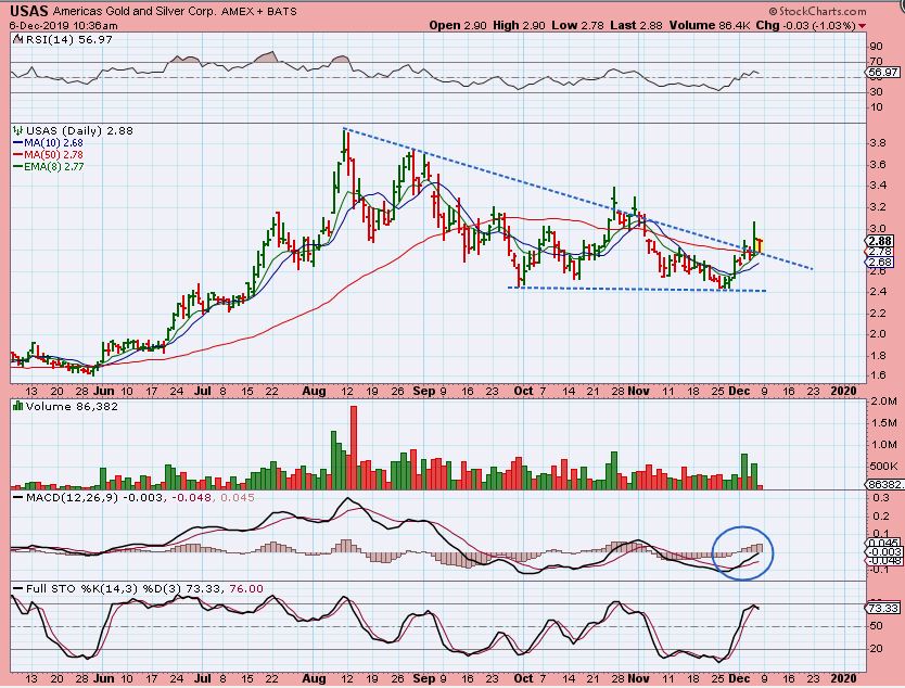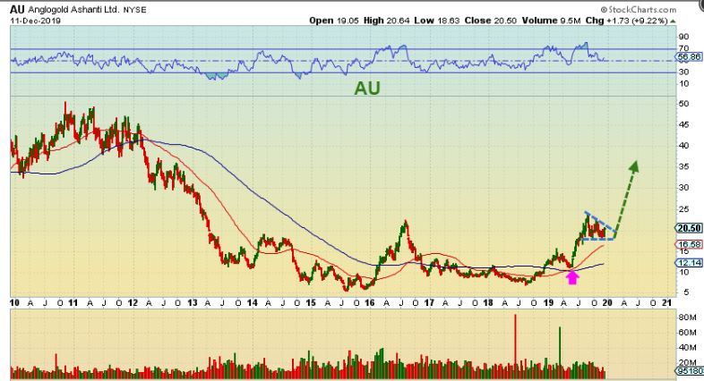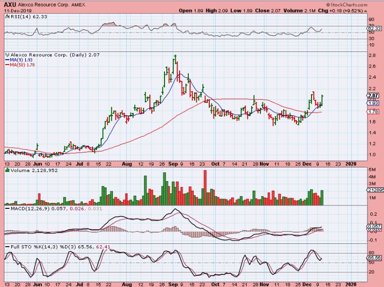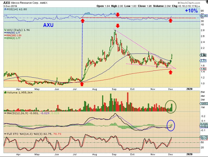 AXU – I pointed this out on November 25 when AXU was about 50 cents lower. This has great potential in the long term in a Bull Market.