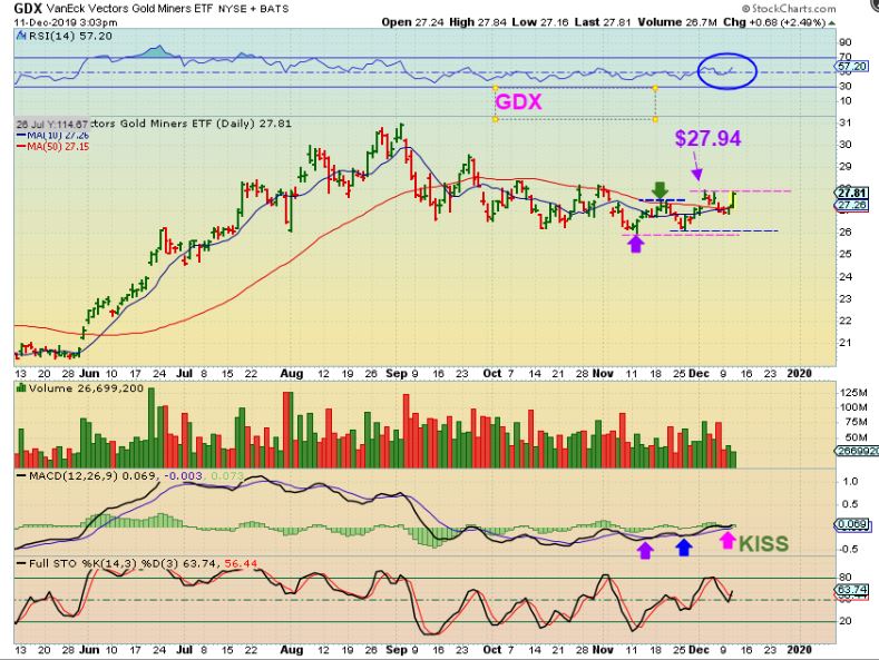 AS MENTIONED IN THE WEEKEND REPORT– I actually got a rare BUY SIGNAL in GDX on the last day of November. This set up RARELY gives me a false reading. It means that the lows should be in place, even if it gets choppy & Sloppy, so I look forward to seeing if the lows hold up with our Fed Mtg this week.