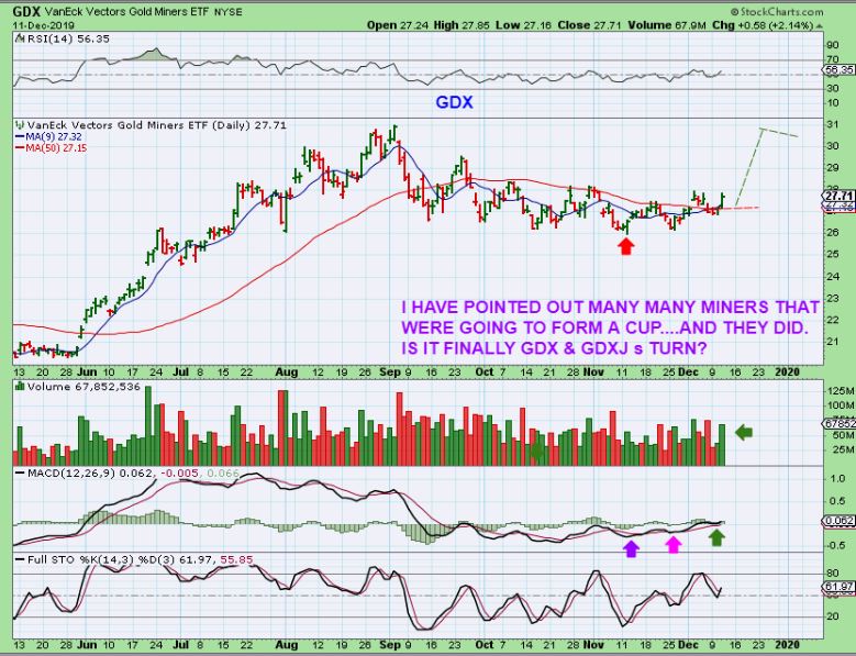 GDX – No 🙁 , but you can see that this looks ready to do what so many Miners already have done. GDX looks ready to Form a cup like I have drawn here. I’ll discuss that a bit later in this report…
