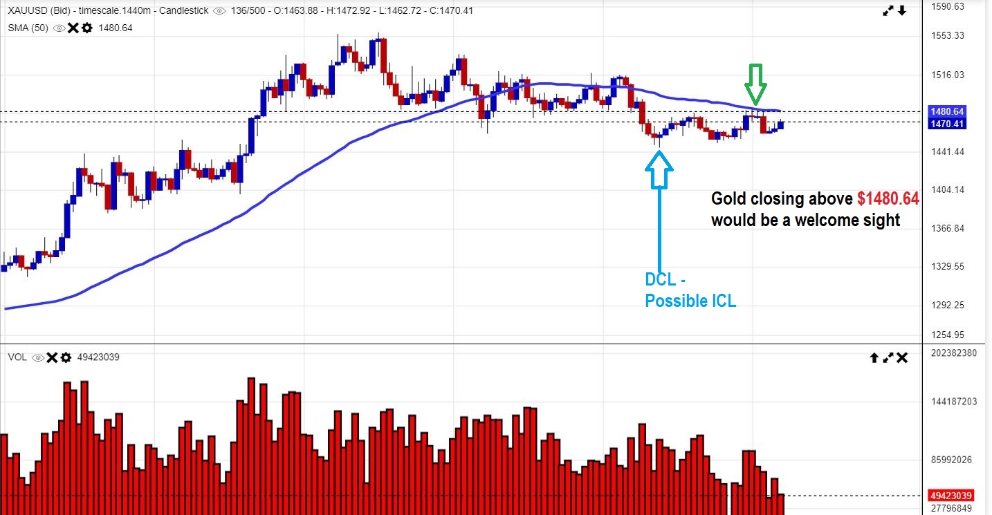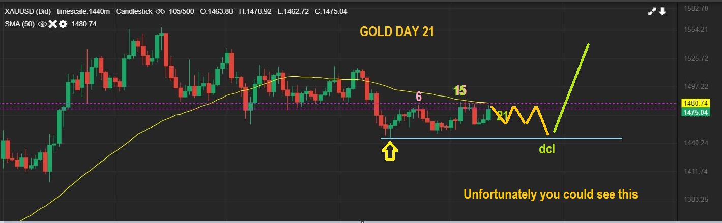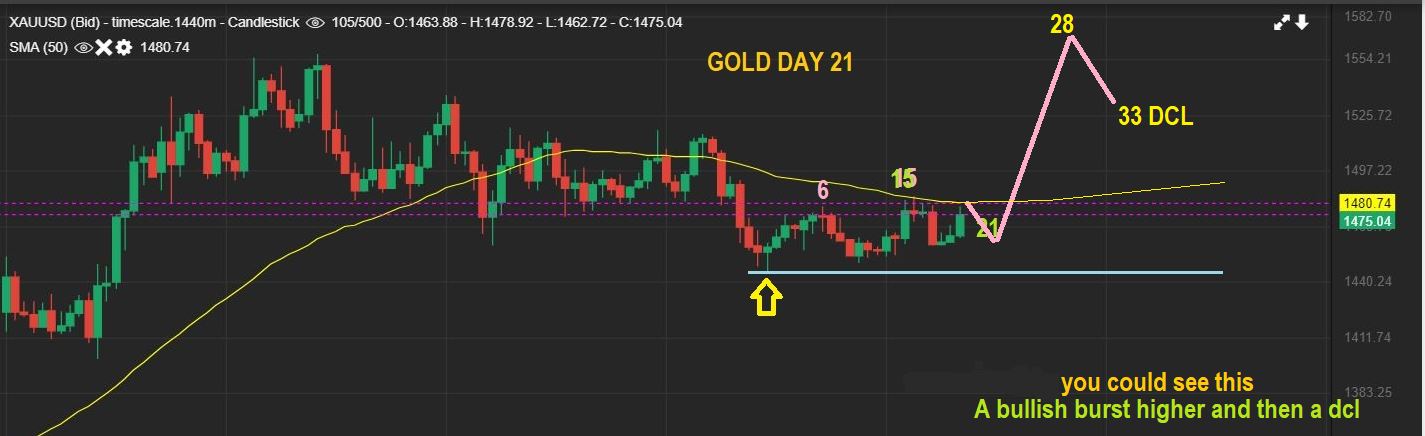GOLD – Or we could break those day 15 Highs, break the 50 sma, rally for a while, and then drop into a higher dcl.